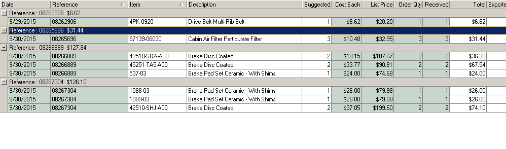 Purchase orders for items acquired for immediate installation on a particular vehicle are created simply by inserting them into a repair order. Until a reference number is also added, the purchase order will appear here as unposted. When the reference number is included, the item is elevated to stage 2: Posted, not Paid. All of that happens without further intervention on your part.