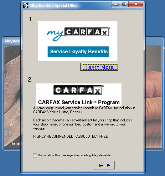 This tool enables your shop to easily check whether a customer is a current myCARFAX user, and if not, creates a myCARFAX account for the customer while their vehicle is being serviced. Your shop then automatically becomes preferred by myCARFAX. When customer's car is due for service, CARFAX will promote your location as the recommended service location by delivering service alerts by email directly to the customer. Click here for details
