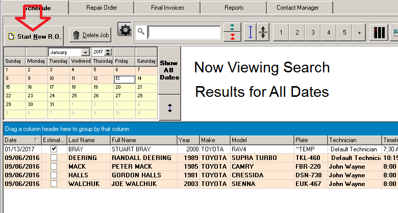 Repair orders are created by first clicking 'Start New Repair Order', on the Schedule tab.