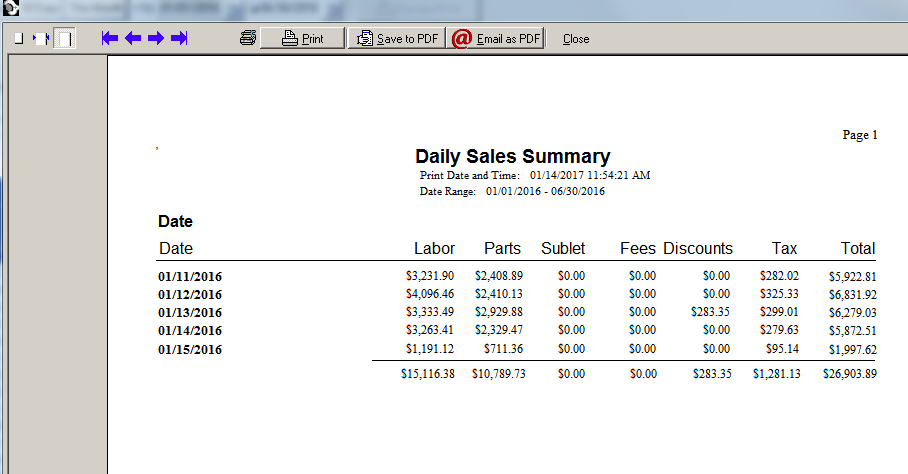 By clicking the Print/Preview button the formatted report is presented for viewing, printing, exporting to pdf, or emailing, the same as any other document that is displayed in Print/Preview.