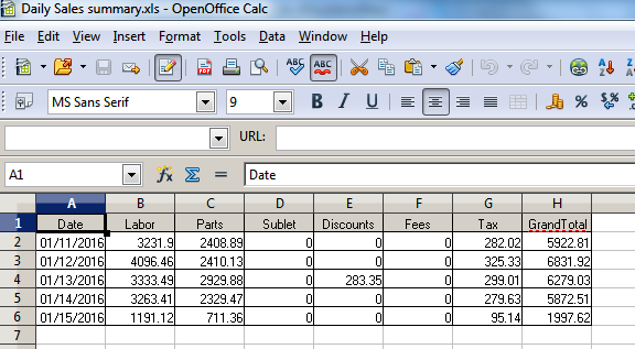 Selected records can also be saved to an Excel spreadsheet by clicking the Excel button. The spreadsheet will be loaded and shown on screen.
